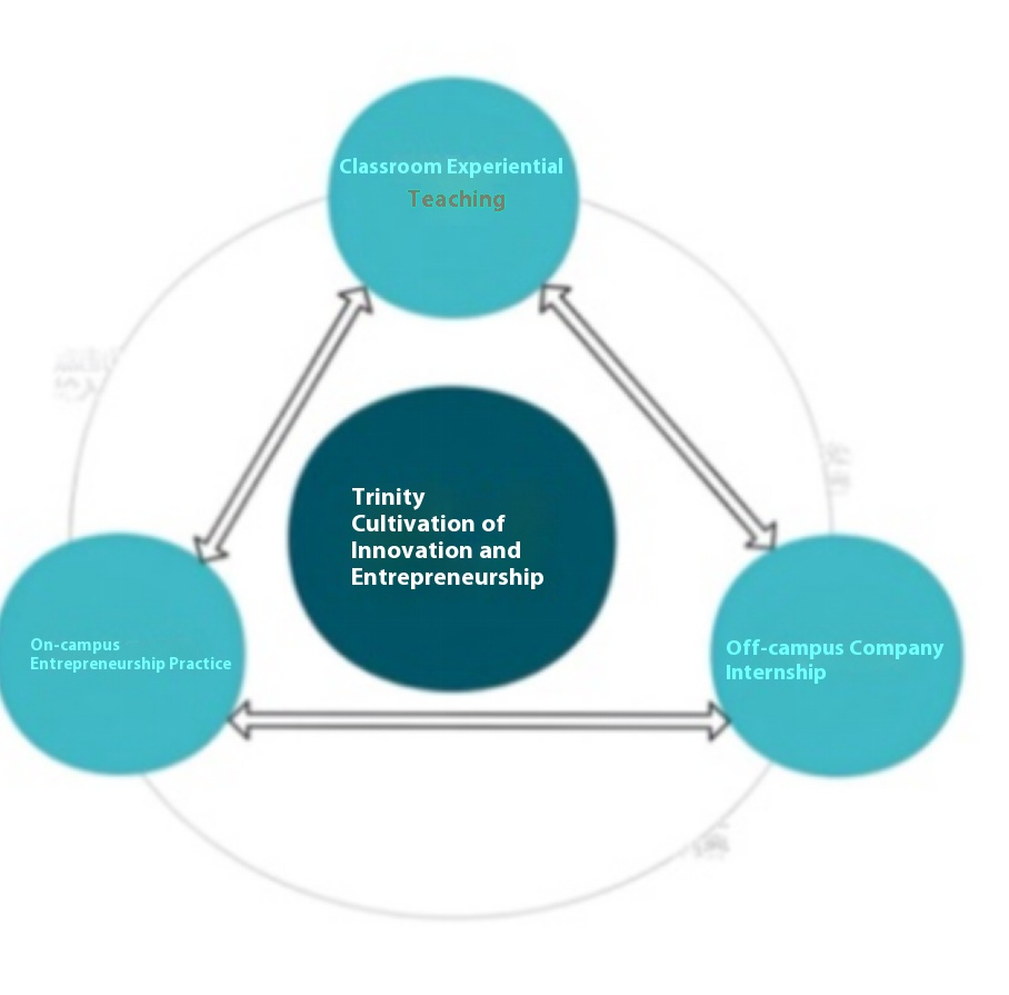 The three levels of classroom experientialteaching,on-campus entrepreneurial practice,and off-campus corporate internships are mu-tually linked,integrated into a “trinity”system,forming a systematic approach to innovationand entrepreneurship education.The mutual relationships among the three levels are shownin Figure 2.