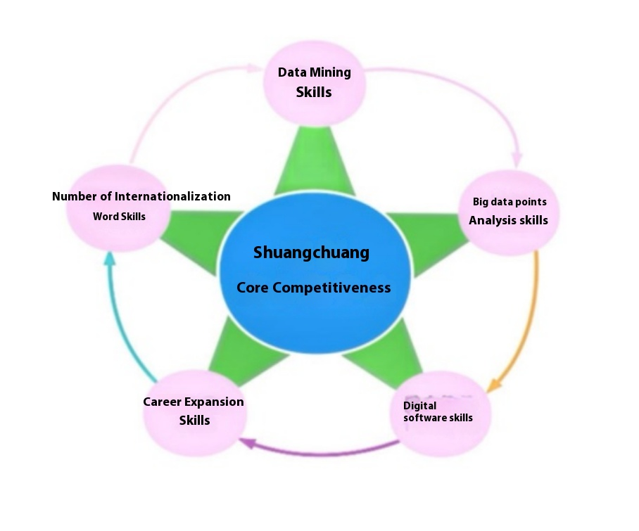 In response to the development trends ofthe digital economy,focus on cultivating fivedigital economy application skills in studentsduring the process of innovation and entrepre-neurship,nurturing their core competitivenessin innovation and entrepreneurship.First,data mining skills.Cultivate students’abilitiesto use data analysis software such as crawlersto conduct market research domestically andinternationally,extracting useful data for in-novation and entrepreneurship.Second,bigdata analysis skills.Cultivate students’bigdata analysis abilities and,based on this,theirabilities to carry out product promotion andpromotional activities,thereby improving theprofitability of entrepreneurship.Third,digitalsoftware operation skills.Cultivate students’proficiency in website creation and mainte-nance,mobile micro-websites,and APP devel-opment and use.Fourth,career expansionskills.Encourage students to obtain vocationalskill certificates related to digital trade,ex-panding the scope of 1+X certificates,so as tohave strong knowledge update and career ex-pansion skills on innovation and entrepre-neurship platforms.Fifth,internationalizeddigital skills.Cultivate students’abilities toflexibly use international social platforms topromote products.