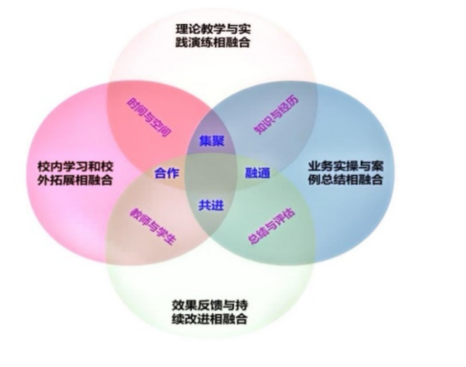 四项融合是指创新创业教育中理论教学与实践锻炼相融合、业务操作与案例总结相融合、校内学习与校外拓展相融合、效果反馈与持续改进相融合。